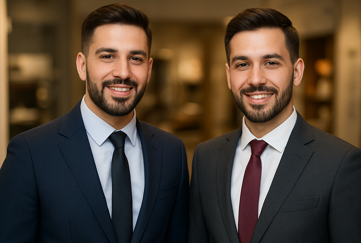دونفر نیروی مرد مرتب شیک و سرو زبان دار باصدای رسا برای توضیح دادن محصولات ترک به توریستهای ایرانی.